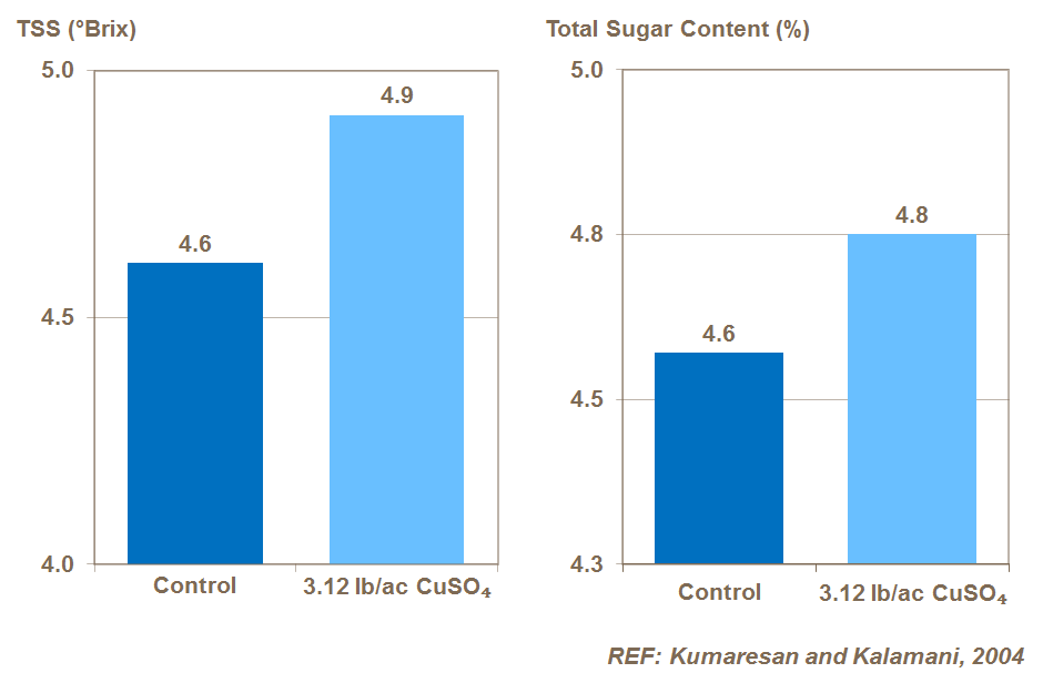 Hindistan'da yapılan deneme, bakır ile dengeli bir beslenme yoluyla iyi büyümeyi teşvik ederek bitki kalitesinin iyileştirildiğini de göstermektedir.