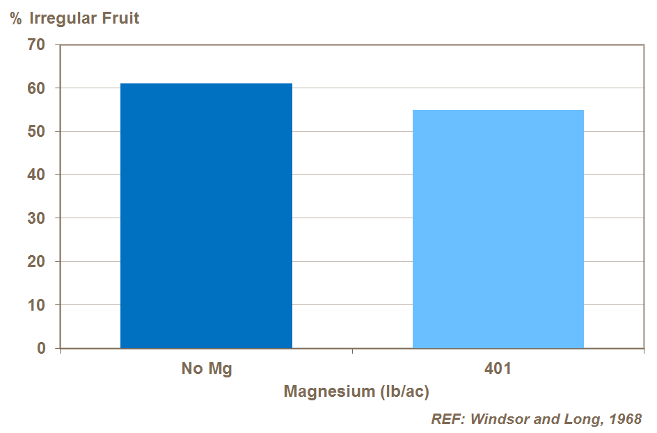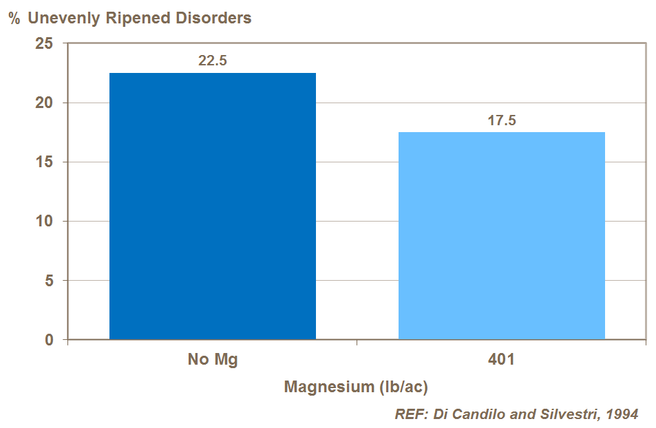 İngiltere'deki çalışmaların gösterdiği gibi, magnezyum özellikle iyi şekillenmiş meyvelerin olgunlaşmasını sağlamak için önemlidir.